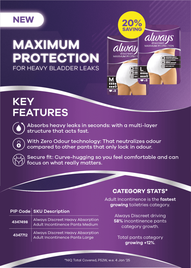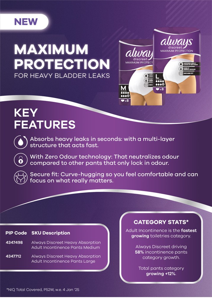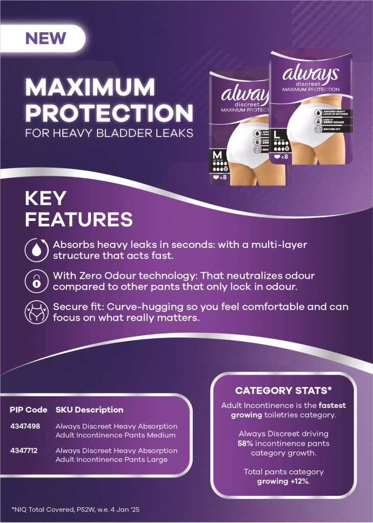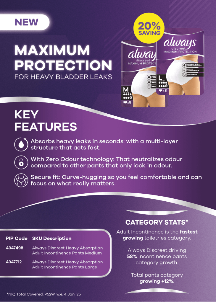 I built the design in Illustrator, saving the images I needed in CMYK format in Photoshop and then importing them into Illustrator as links. The brief was clear in terms of what I needed to display on the page, so it was a case of putting it all on there and then using design elements from the Always brand to bring it all together. I really liked the wavy line shape used in the packaging, so I decided to recreate that and use it as the signature section of the design.