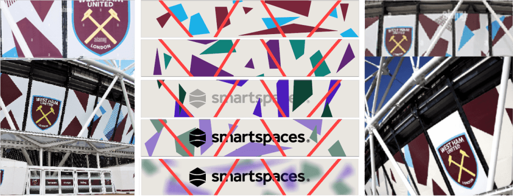 In 2024, Smart Spaces were the principal sponsors for Space UK at the London Stadium, giving them access to a variety of screens both inside and outside the venue. The screens were unusually wide and came in many different sizes, from the advertising boards around the pitch at an enormous 21360 x 72px, to interior screens at 1752 x 528px, 1856 x 64px, 3520 x 64px, and 5328 x 912px.