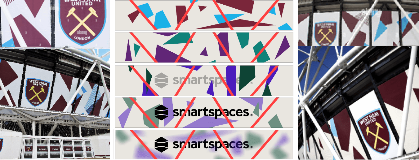 In 2024, Smart Spaces were the principal sponsors for Space UK at the London Stadium, giving them access to a variety of screens both inside and outside the venue. The screens were unusually wide and came in many different sizes, from the advertising boards around the pitch at an enormous 21360 x 72px, to interior screens at 1752 x 528px, 1856 x 64px, 3520 x 64px, and 5328 x 912px.