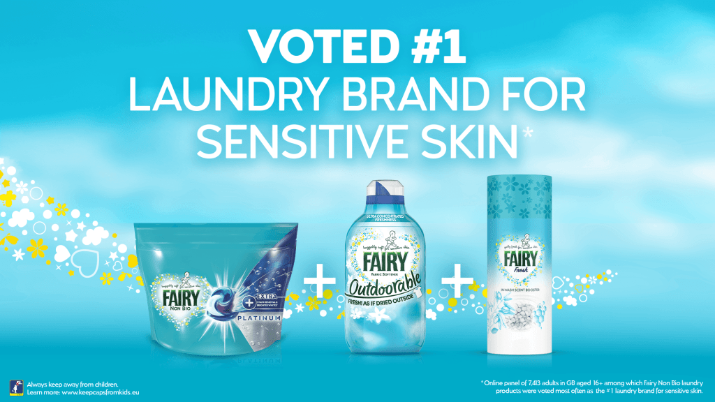 Fairy wanted a video to acknowledge being voted the number one laundry brand for sensitive skin. They had already created a static image for the announcement and wanted that artwork brought to life through animation.