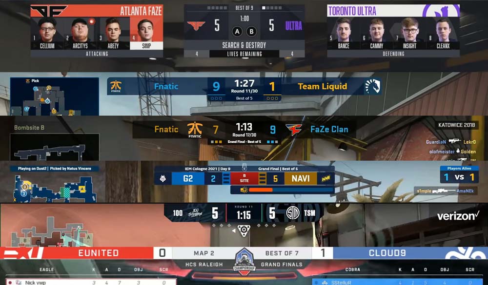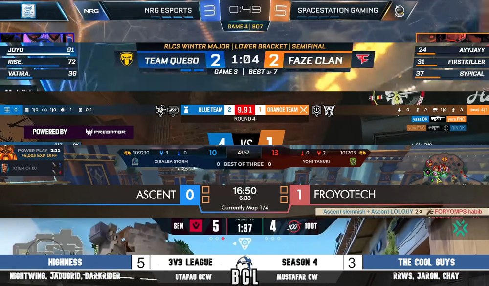 Once I had the logo in place, it was time to build the in-game overlay. I did a lot of research on different overlays used by other eSports to get a feel for what the most successful way of displaying the information on screen was. The best-looking ones were generally the ones which took up the least amount of space on the screen, and I picked out a selection below.